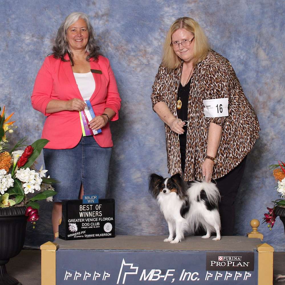 Baypalms Papillons began in 2003 when I acquired my first show dog Desi (Ch. Baypalms Wings of Desire) from Elizabeth Shelton who was kind enough to place a show dog with a newcomer. Over the years, I have worked with breeders such as Ruth Ann and Danny Ford of Forevr Papillons, Anita Wright of Draco Papillons and Karen Murad of Krystal Papillons, working to build a good foundation of well bred, healthy dogs from good pedigrees. I am extremely grateful to all these breeders for being willing to share their dogs with me. I enjoy handling my own dogs and my Papillons are owner handled with pride.
